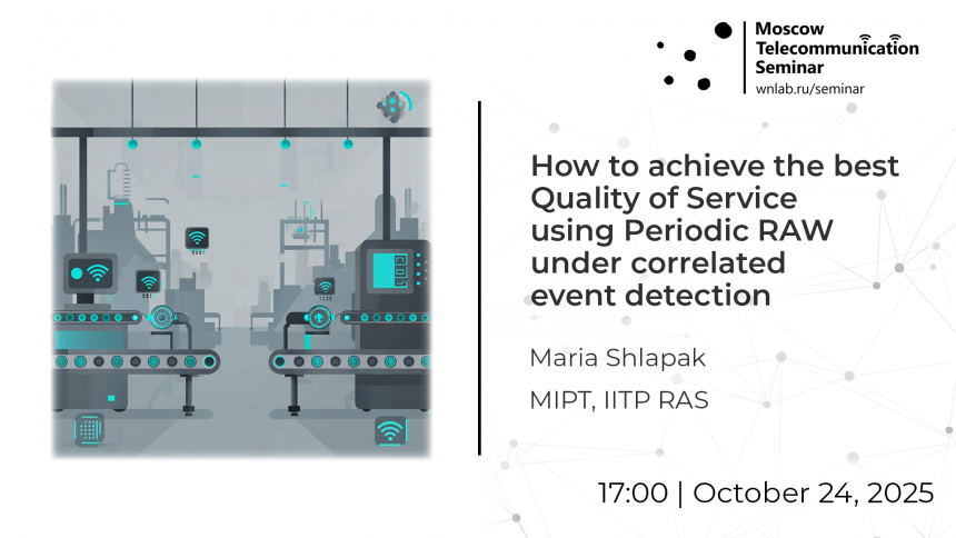 We are happy to invite you to the next talk of Moscow Telecommunication Seminar on Friday, October 24, 2025. Title: How to achieve the best Quality of Service using Periodic Restricted Access Window under correlated event detection. Speaker: Maria Shlapak, MIPT, IITP RAS.