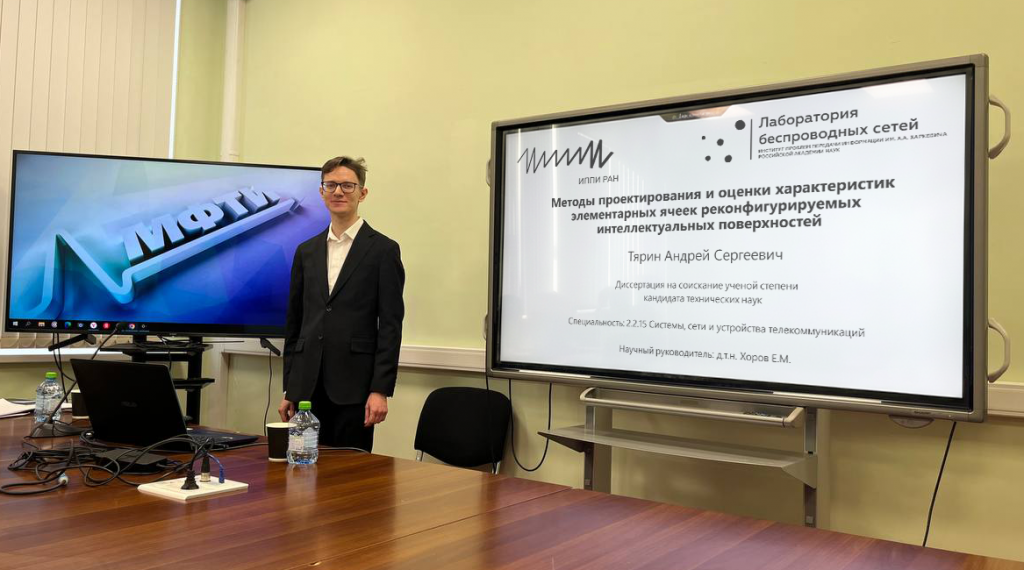 Диссертация Андрея Тярина «Методы проектирования и оценки характеристик элементарных ячеек реконфигурируемых интеллектуальных поверхностей» посвящена РИП – перспективному классу устройств, способных увеличить пропускную способность и область покрытия беспроводных сетей.